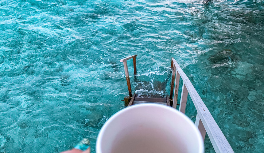 I choose to stay at Centara Ras Fushi Resort which is a quick 20min speed boat ride from the Male Airport. They have cozy water villas which gives you an unobstructed view of the horizon on your villa’s balcony and get to breathe in plenty of this beach pristine air.